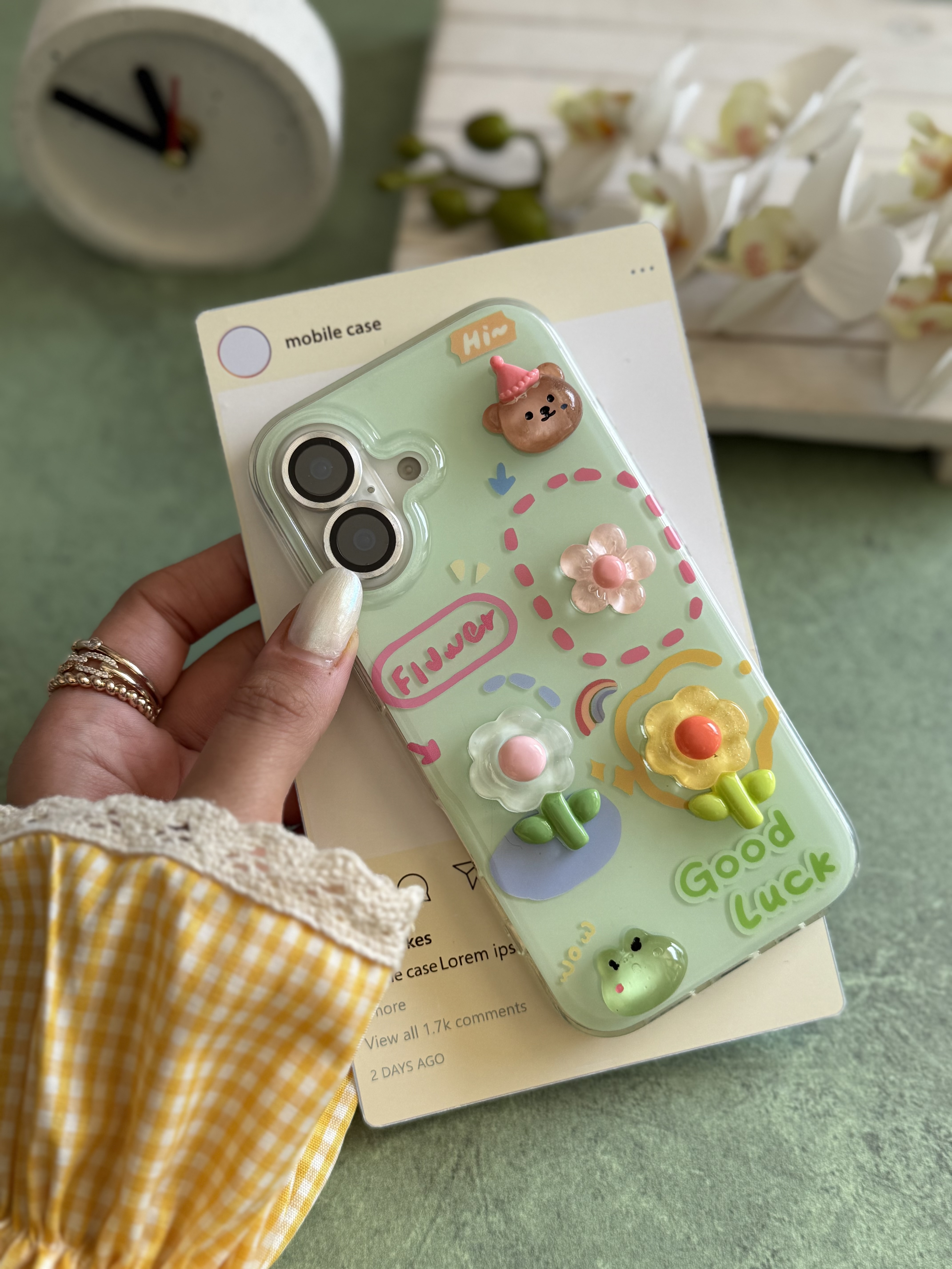 قاب گل برجسته زمینه سبز GOOD LUCK (کدC2107)