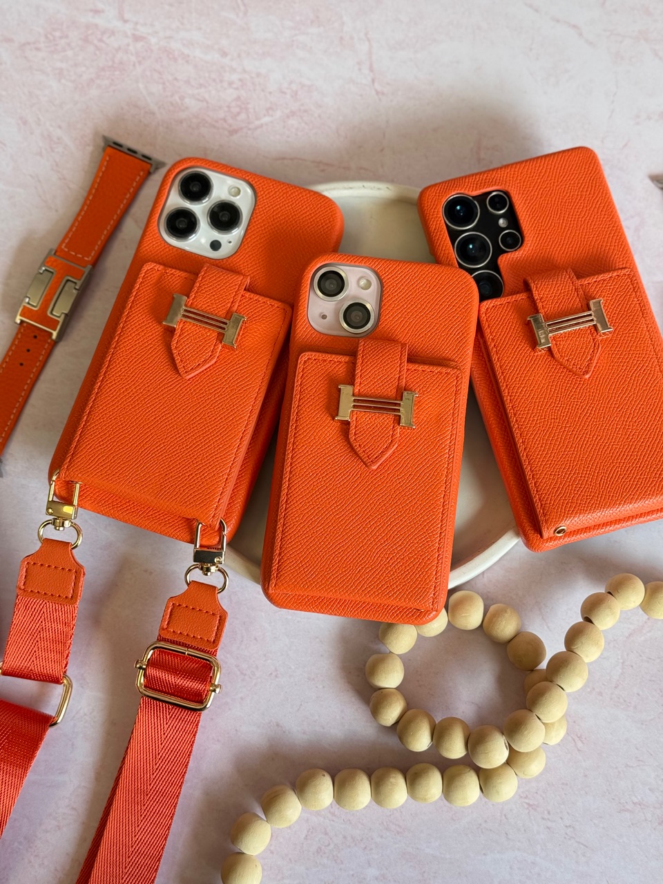 قاب هرمس کیفی چرمی با بند بلند رنگ نارنجی (کدC2201)